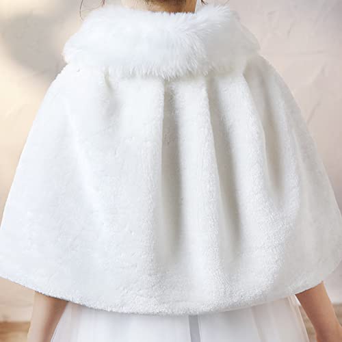 Girls Wraps and Shawls for Dress Wedding Faux Rabbit Fur Princess Shoulder Cape Bridesmaid Tippet Stole Christmas Cloak Party Costume Gift (Self-tie, Beige, Suggest for girls height 47-55 inch) 5