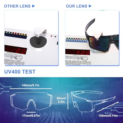 • About Design:The top and bottom edges of our cycling glasses are frameless, which preserves the lens area to a greater extent and provides a wider field of vision when worn. The temples that bend slightly inward form a three-point structure with the center of the sports fan sunglasses , resulting in a more even force when wearing.