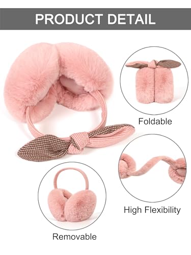 sy soul young Women's Ear Muffs Winter Warm fluffy cute Earmuffs with Bow Tie Foldable Cold Weather Faux Fur Ear Warmer Girl 4