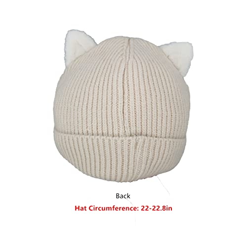 Crochet Fleece Lined Cat Ear Hat Knitted Beanie Cap Photo Prop for Women Girls Fall Winter 2