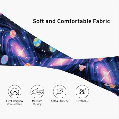 Boys Girls Sports Sweat Band, Multipurpose Long Head Ribbon for Sports Workout Spa, Fashion Universe Galaxy Stars Planets Art Headdress Hand Decor 6