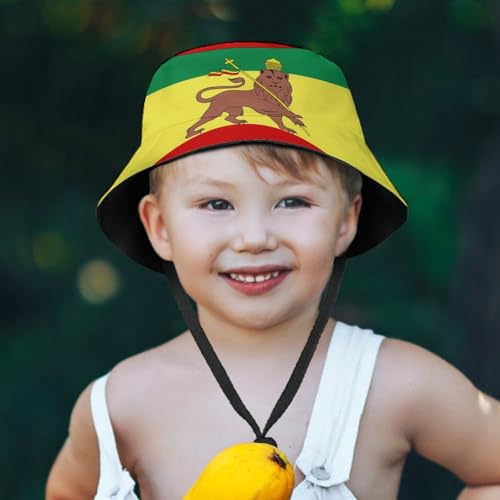HOT ! Jamaica Rasta Lion FlagChildren's Bucket Hat for Boys and Girls, Breathable Summer Beach Hat52cm