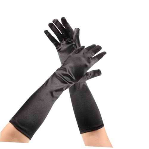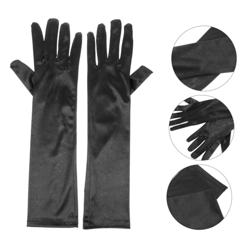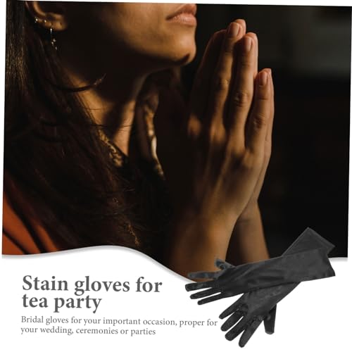 More information about PartyKindom 2 Pairs Satin Stretchy Black Funeral Gloves Wedding Bridal Gloves for Women for Church Stretch Stain Resistant Tea Party Banquet Engagement Prom