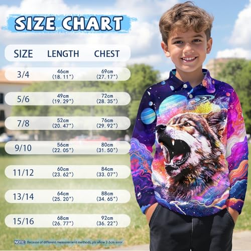 • Size: This long-sleeved children's shirt comes in 7 sizes and is suitable for children aged 3 to 16. When purchasing, please refer to the size chart on the left to choose the appropriate size for your child.