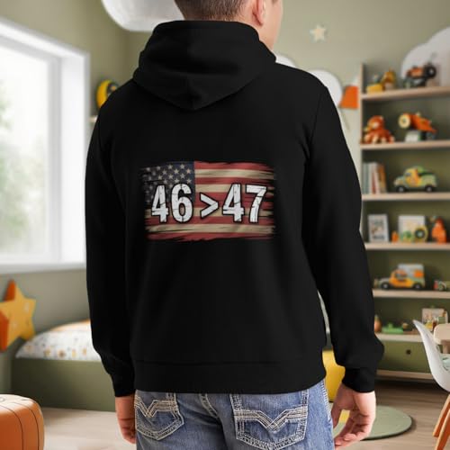 Kids 46 Better Than 47 Vintage US Flag Boys Girls Lightweight Kangaroo Pocket Fleece Hoodies 2