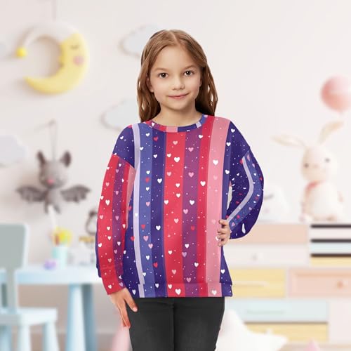 JUNZAN Purple Hearts Stripes Big Girls Sweatshirts Hoodies Crewneck Kids Pullover Hoodie Sports 4T 5