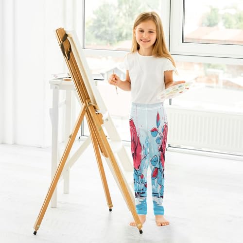 Bolaz Toddler Girls Leggings Printed Yoga Pants Leggings Blue Leaves Red Rose for Kids 7