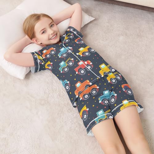 ALAZA Truck Car Polka Dots Pajamas Satin Pajama Set Short Sleeve Button Down Sleepwear 6