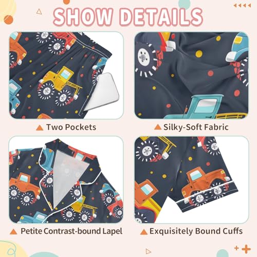 ALAZA Truck Car Polka Dots Pajamas Satin Pajama Set Short Sleeve Button Down Sleepwear 4