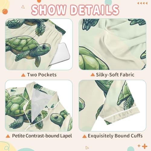 Satin Pajama Sets Short Sleeve Sea Green Turtle Pattern Button Down Silky Nightwear 2 Piece PJS 5-14Y 4