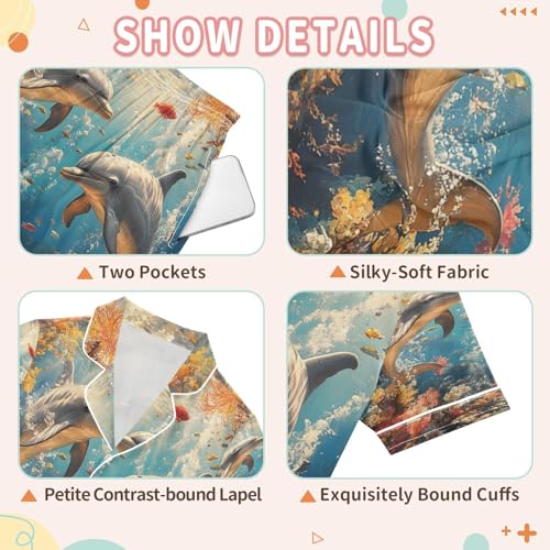 ALAZA Dolphin Beautiful Coral Reef Satin Pajamas Set Short Sleeve Button Down Sleepwear Summer Pjs 2 Piece 1