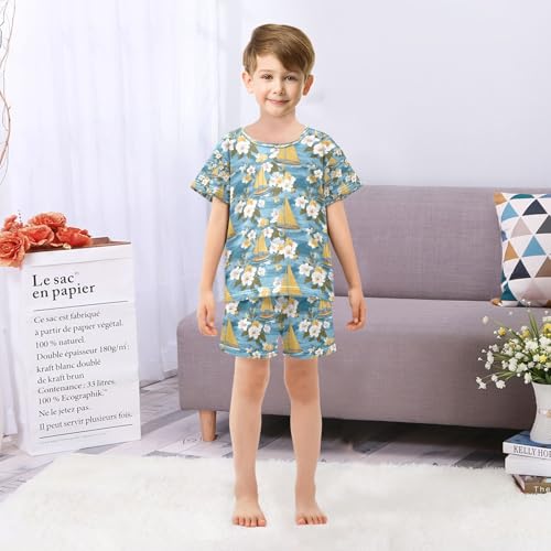 senya Yellow Sailboat Flower A Summer Pajamas Set Short Cotton Sleepwear 2 Piece 1