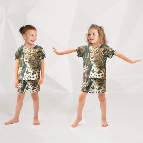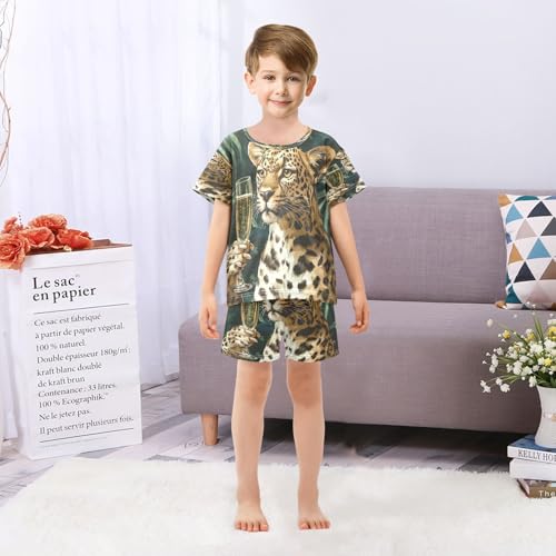 Pajama Sets Short Sleeve Leopard Holding Glass Wine Soft Cotton Summer Sleepwear 2 Piece PJS Size 5-14T 1