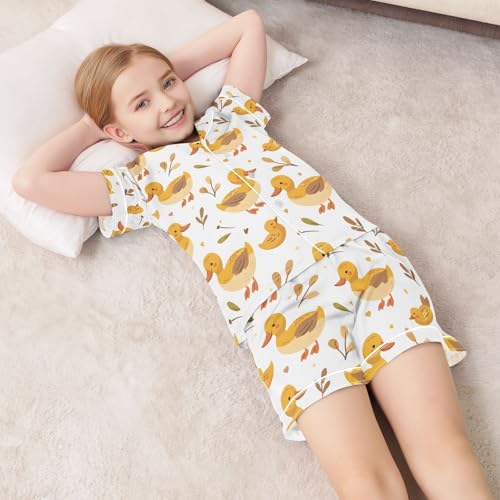 ALAZA Leaf Duck Pajamas Satin Pajama Set Short Sleeve Button Down Sleepwear 6