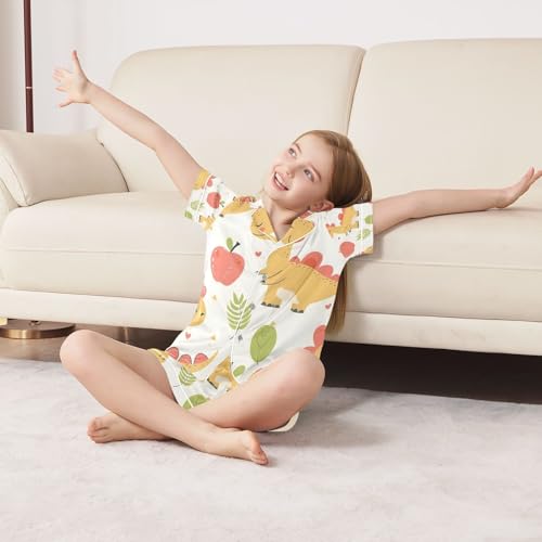senya Cute Dinosaur Pink A Satin Summer Pajama Sets Silk Short Sleeve Button Down Sleepwear 6