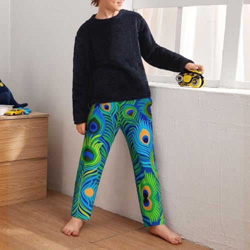 Pajama Pants Pajama Bottoms with Elastic Waistband Sleepwear Lounge PantsGreen Peacock Feathers 5