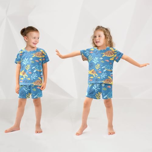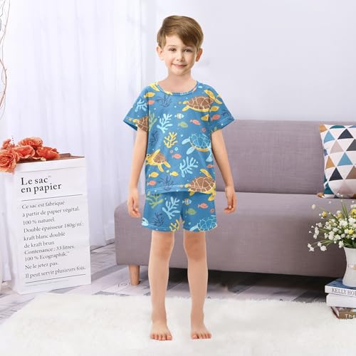 ALAZA Sea Turtle Fish Coral Reef Pajamas Short Sleeve 2 Piece Sleepwear Top and Bottom Pajama Set Unisex 3