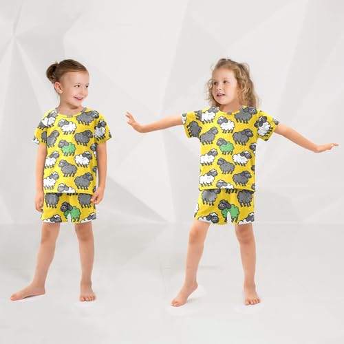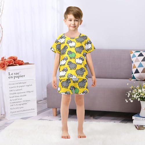 ALAZA Cartoon Sheep Yellow Pajamas Short Sleeve 2 Piece Sleepwear Top and Bottom Pajama Set Unisex 6