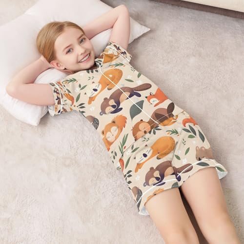 senya Wild Sleeping Animals Satin Summer Pajama Sets Silk Short Sleeve Button Down Sleepwear 6