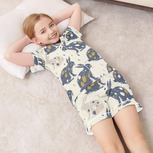 HOT ! ALAZA Rabbit Bunny Easter Painting Pajamas Satin Pajama Set Short Sleeve Button Down Sleepwear