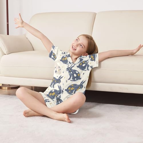 ALAZA Rabbit Bunny Easter Painting Pajamas Satin Pajama Set Short Sleeve Button Down Sleepwear 7