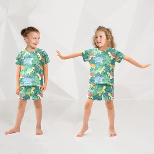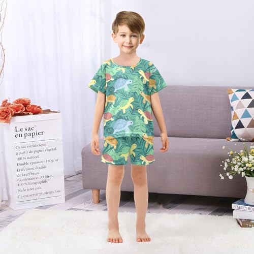 ALAZA Turtles Green Leaves Pajama Set Short Sleeve Sleepwear Soft Lounge Nightwear 3