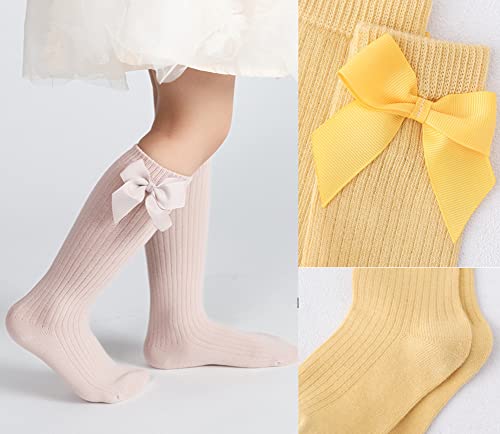 Little Girls' Knee High Socks Bow-Stitched Bows Long Stockings Casual & Dress Socks Cotton 6 Colors 5