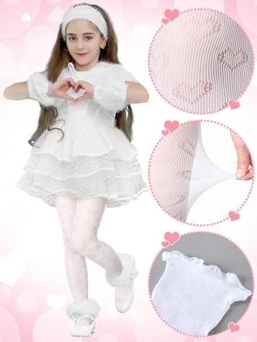 3 Pairs White Black Lace Tights for Girls Toddler Heart Hollow Sheer Stockings Dance Pantyhose for First Communion 5