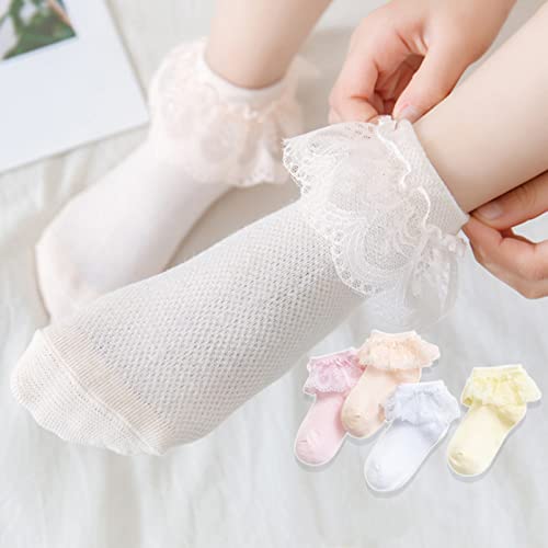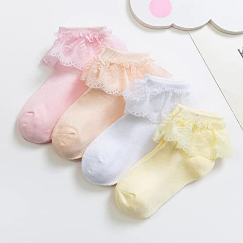 4 Pairs Lace Ruffle Ankle Socks for Girl, Cotton Princess Style Toddler Dress Sock for 2-11 Years 4