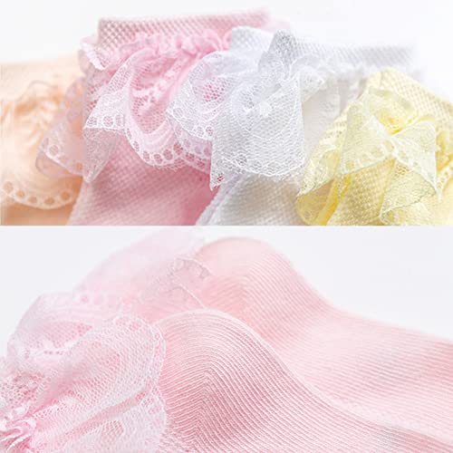 4 Pairs Lace Ruffle Ankle Socks for Girl, Cotton Princess Style Toddler Dress Sock for 2-11 Years 6