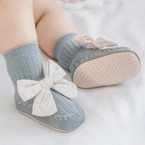 HOT ! Baby Girl Sock Shoes with Cute Bowknot Leather Sole Grips, Mid Calf Non-Slip Princess Walking Socks for Toddlers