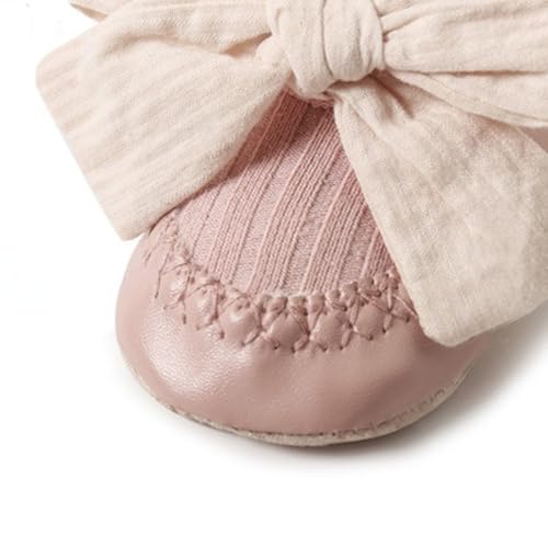 Baby Girl Sock Shoes with Cute Bowknot Leather Sole Grips, Mid Calf Non-Slip Princess Walking Socks for Toddlers 4
