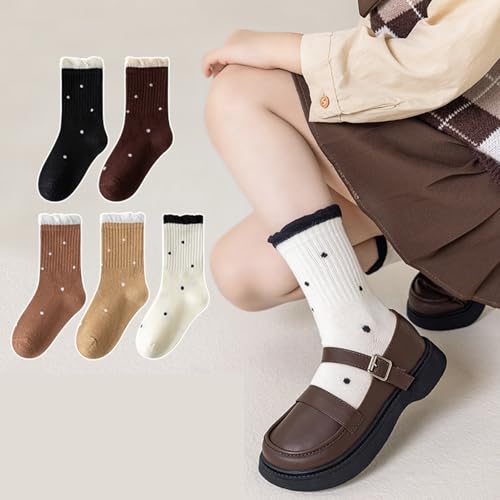 Pack of 5 Pair Girls Lace Socks Fashionable Middle Tube Socks Cotton Short Socks for Ages 1 to 12 Years Kids 4