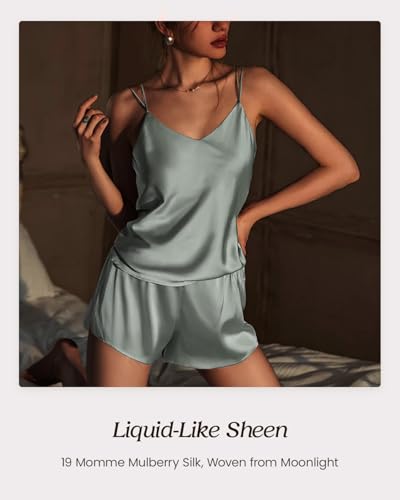 More information about 100% Mulberry Silk Pajamas Set for Women - 19 Momme Silk V-Neck Cami & Shorts, Luxury Sleepwear