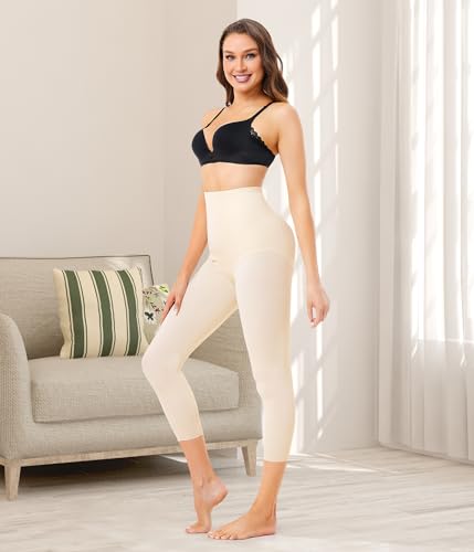• COMFORTABLE AND BREATHABLE SHAPEWEAR PANTS: Our high waisted capri shaper are made of high quality nylon and spandex, comfortable and stay cool, get rid of muggy even in summer. This seamless shapewear underwear apply gentle support to shape and slim the waist, hips, and entire leg area, ensuring a smooth and discreet appearance. Revel in exceptional comfort as you wear the wireless body shaping shorts to work or daily life, allowing you to sit at ease during extended hours.