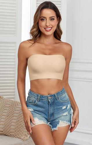 Strapless Bras for Women Non-Slip Silicone Bandeau Bra Seamless Wireless Strapless Bra Padded with 1 Pairs Straps 6