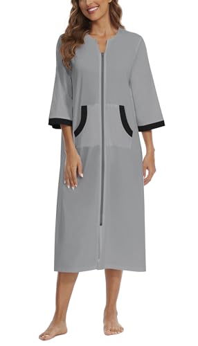 Zipper Robes for Women 3/4 Sleeve Housecoats Long Lightweight Bathrobe House Dress with Pockets 3