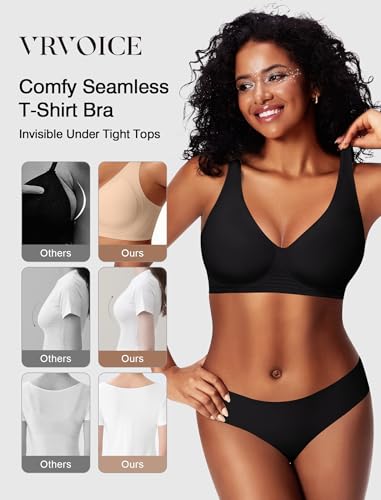 Womens Deep V Wireless Bras Comfortable No Underwire Supportive Push Up Seamless Plunge Bralette Tshirt Bra 6