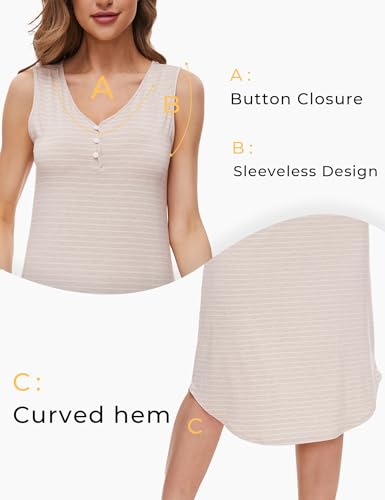 • BUTTON CLOSURE: Women's sleeveless tank nightgown features V neck with button closure for added feminine style, also easy for nursing or breastfeeding. Curved hem with beautiful finish