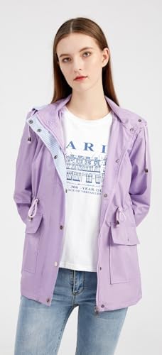 Womens Raincoat Windbreaker Waterproof Lightweight Lined Hooded Rain Jacket 5