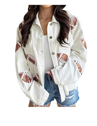 More information about SeekMe Women's Cropped Corduroy Jacket Football Sequin Patched Short Button Raw Hem Jacket Coat