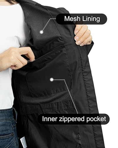 • Enhanced Breathable: Outdoor Ventures waterproof jackets for women is made of mesh lined, Armpit air vents improve air circulation, dispersing excess heat and maintaining dry. And mesh lining design will let you wear more comfortable, you don't worry about not breathable in summer.