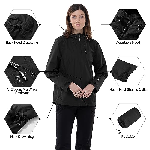 Outdoor Ventures Packable Rain Jacket Women Lightweight Waterproof Raincoat with Hood Cycling Bike Jacket 6