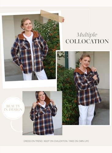 Dokotoo Womens Plaid Shacket Jacket Long Sleeve Button Down Fleece Hooded Jackets Warm Coat 5