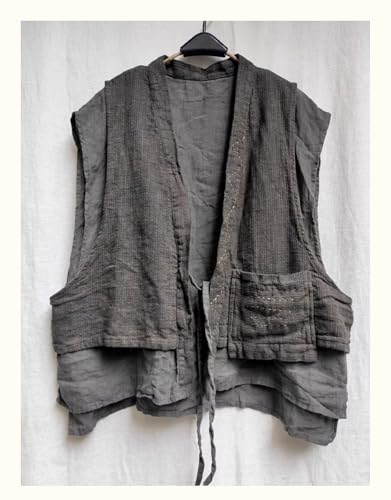 NFYM Women's Linen Vest Sleeveless Open Front Kimono Cardigan Hippie Vintage Waistcoat with Pockets 7