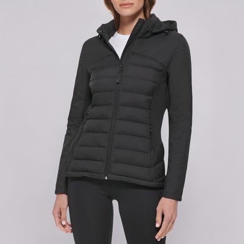 Calvin Klein Women's Lightweight Scuba Side Panels Adjustable Hood Zip Pockets Puffer 1