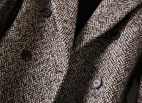 • Midi long wool coat for women 2025, featuring retro herringbone stripe pattern overlay, front double breasted button down placket & notch lapel collar, blow knee length; Business casual winter coat with pockets, long sleeve with drop shoulder, chic lazy style