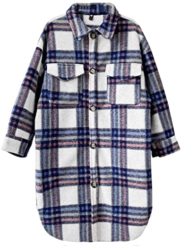 • Feminine and Elegant:stylish women oversized shacket plaid coat for a casual look; single breast long length wool blend plaid overcoat shacket is easily wear with your knit dress, basic knitwear, hoodies, and skinny pants