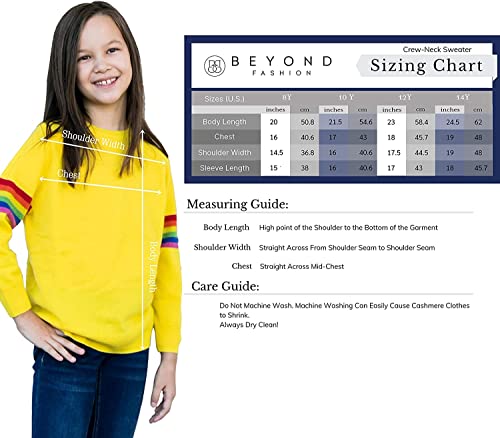 BEYOND FASHION Big Kids Unisex 100% Cashmere Sweater Pullover Rainbow Stripe Long Sleeve 6