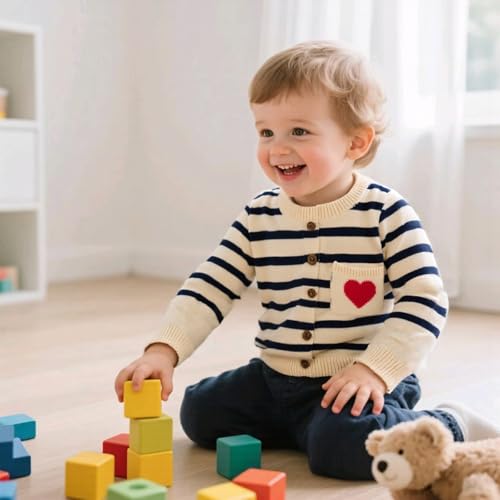 Winmany Toddler Cardigan Sweater Kids Striped Knit Button Down Sweater with Heart Pocket, Soft Cotton Cardigan for Girls Boys 1